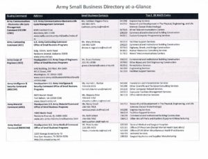 3.0 FA Sales – Doing Business with Army #2 – Small Business Directory at a Glance Selling to the Army. Small business offices for 11 major commands. Posted in .